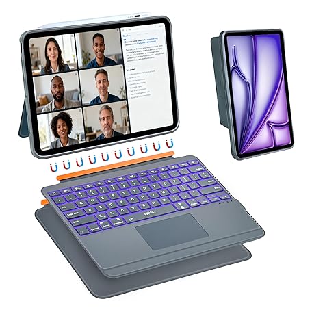 WIWU Keyboard Case for iPad Air 13 Inch 3 in 1 Magnetic Detachable Keyboard Case Adjustable Stand 7 Colours Backlit Keys with Trackpad (Grey, for Air 13"(M3/M2) Pro 12.9" 6/5/4/3)