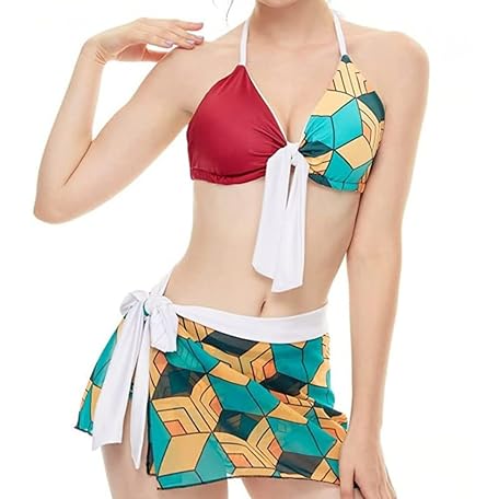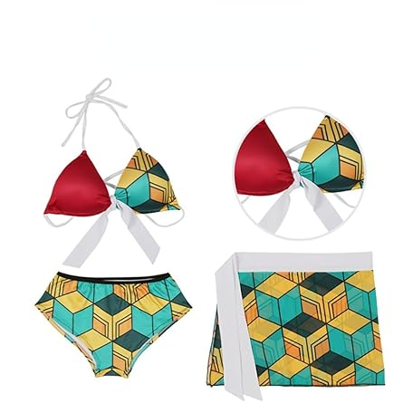 • WKDTWCOS Agatsuma Zenitsu Tomioka Giyuu Kochou Shinobu Tanjirou Nezuko Bikini Beach Summer 4 Piece Swimsuit for Women Girls