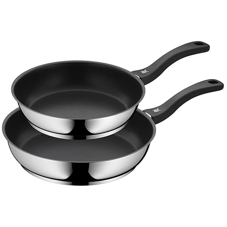 WMF Devil Pans Set of 2聽Nonstick Frying Pan Coated 24聽28聽cm Permadur Flame-Retardant Plastic Handle Cromargan Stainless Steel Hand Wash Dfrei Induction Frying Pan, Silver, 16聽cm (Pack of 2聽Units