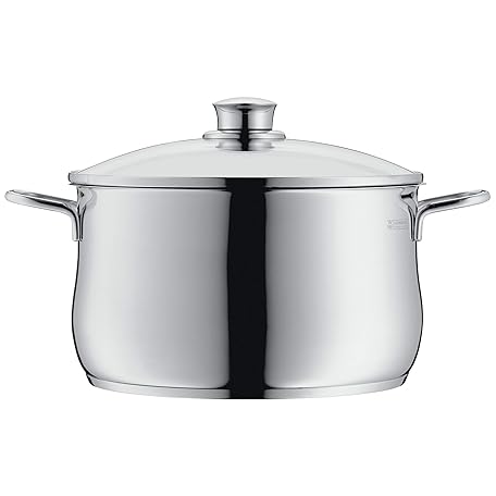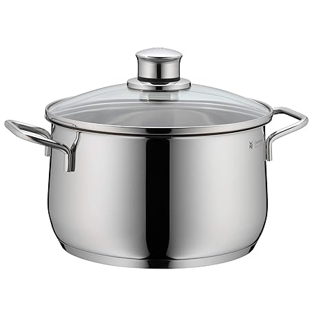 Thông tin sản phẩm WMF High Casserole Approx 3.7L Diadem Plus Pouring Rim Glass Lid Cromargan Stainless Steel Polished Suitable for Induction Hobs Dishwasher Safe, 20 cm, Silver