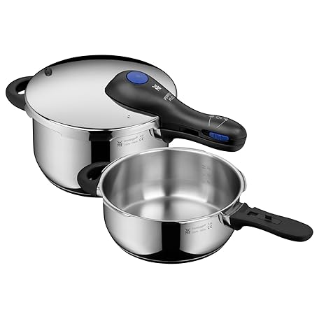 Thương hiệu WMF là cái tên nổi tiếng được rất nhiều khách hàng trên thế giới chọn lựa. Với kiểu dáng đẹp mắt, sang trọng, sản phẩm WMF Perfect Plus – Set with Quick Cooker Diameter 22 cm Diameter of 4 Litres and a Half + Body 3 Litres with Flame Protection, Cromargan Stainless Steel for Induction là sự lựa chọn hoàn hảo nếu bạn đang tìm mua một món cho riêng mình.