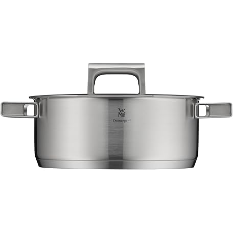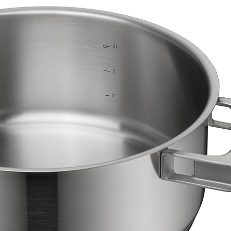 WMF Ultimate Cool Small Cooking Pot 24 cm, Stainless Steel Lid, Stewing Pot Induction 4.1 L, Matt Cromargan Stainless Steel, Heat-Reducing Handles, Induction Pot with Inner Scale, Dishwasher Safe