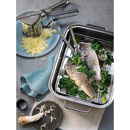 Thông tin sản phẩm WMF Vitalis Aroma Steamer, Roasting Dish Induction, 41 x 27 x 10 cm, Casserole Dish 6.5 L, Serving Tongs, Glass Lid Silicone Rim, Thermometer, Cooking Tray, Cromargan Stainless Steel, Uncoated