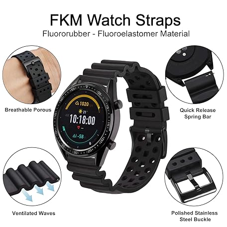 Sản phẩm WOCCI 20mm Ventilated Watch Band for Men, FKM Rubber, Black Buckle (Black) đang được bán với giá ưu đãi là $22.8791 tại nước Mỹ.