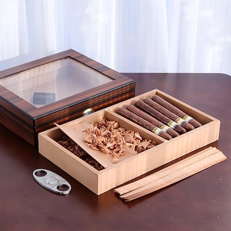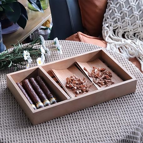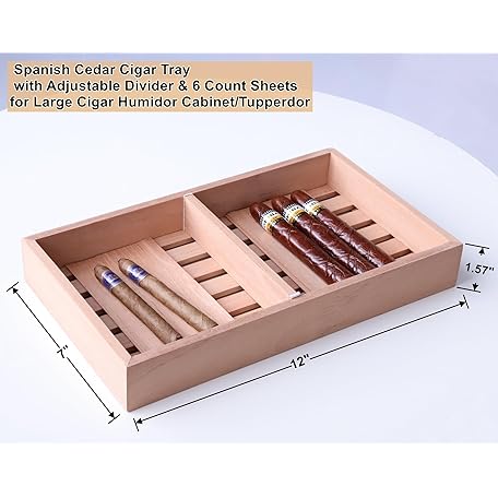 Woho Spanish Cedar Cigar Tray with Adjustable Divider & 6 Count Sheets, Cedar Cigar Tray for Large Cigar Humidor Cabinet/Tupperdor, Cedar Wood Tray for Cigar Storage/Organization/Aging (12"X7"X1.57")