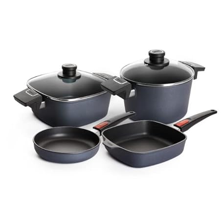 Woll Diamond Lite 6-Piece Saucepan and Pan Set Consists of Flat Pan Diameter 20 cm, Square Pan 22 x 22 cm, Casserole 22 x 22 cm, Pot Diameter 20 cm and 2 Safety Glass Lids Diameter 20 cm and 22 x 22