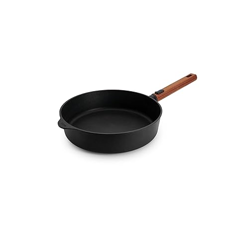 Woll Eco Logic QXR Cast High Rim Pan Inductive Diameter 28 cm 7 cm High with Removable Sustainable Wooden Handle Suitable for All Hob Types PFAS-Free Non-Stick Coating Cast Aluminium