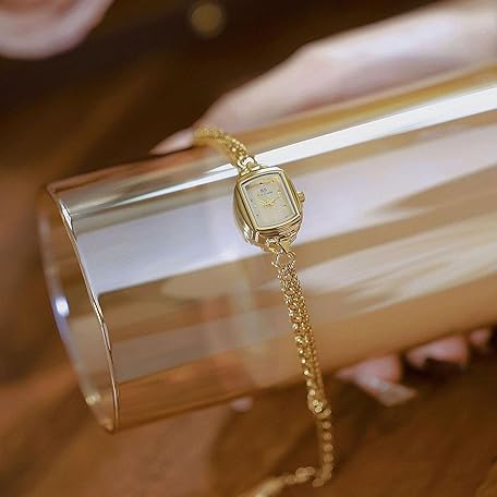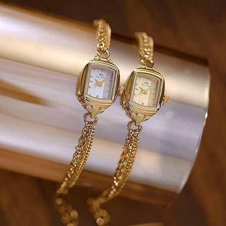 • Womens Dainty Silver Gold Silver Rectangle Pearl Dial Tassel Chain Ultra Thin Waterproof Quartz Watch Ladies Dress Casual Elegant Analog Wristwatch Bracelet