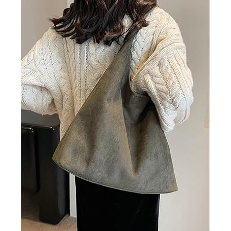 Womens Fashion Suede Shoulder Bags Large Tote Bag Retro Purse Handbag Casual Work Ladies Top Handle Satchel