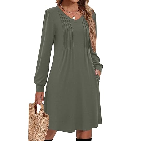 • Women's Long Sleeve Empire Waist Ruched Vacatoin Slim Flowy Midi Sundress, S-2XL