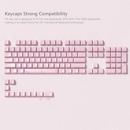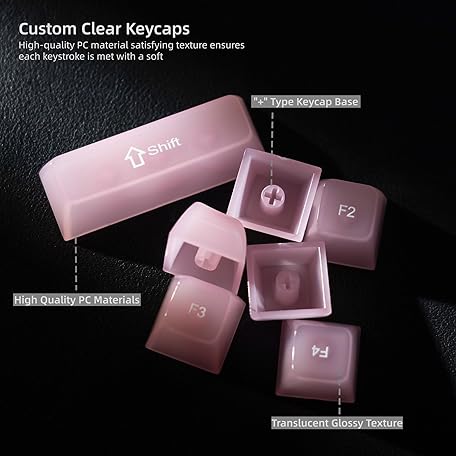 Thông tin sản phẩm Womier Keyboard Keycaps Jelly, Clear Cute Keycaps, Transparent Pink Custom Key Cap 60 65 75 100 Percent for Cherry MX, Kailh, Outemu, Gateron Mechanical Keyboards(MDA Profile)