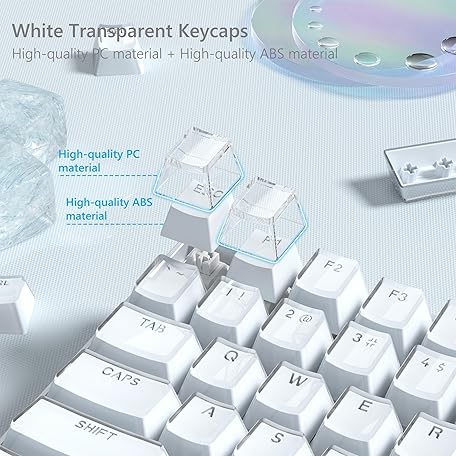 Thông tin sản phẩm Womier Keycaps - Jelly Keycaps White 60 75 100 Percent, Crystal Shine Through Custom Key caps Set, 118 Keys OEM Profile for 61/68/84/87/98/100 Cherry Gateron MX Mechanical (Backlit White)