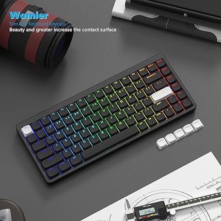 Thông tin sản phẩm Womier Low Profile Keycaps for Mechanical Keyboard, Black Shine Through Keycaps, PBT Keyboard Key caps 60% 65% 75% 96% 100% for Cherry Gateron MX Switches, Black Backlight