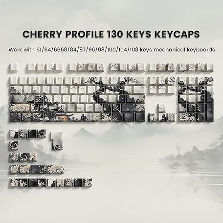 Womier PBT Keycaps Set 130 Keys, Custom White Japanese Keyboard Doubleshot Dye Sub Side Print Shine Through Keycaps 60 65 75 100 Percent, Cherry Profile (Ink Painting)