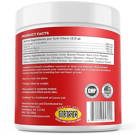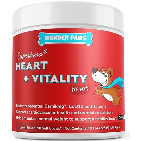 Thông tin sản phẩm Wonder Paws Cardio Support for Dogs – Cardiovascular Chews Heart Health, Circulation, Energy & Weight Management - with L-Carnitine, Hawthorn Berry, Coenzyme Q10 & Taurine for Dogs – 90 Soft Chews