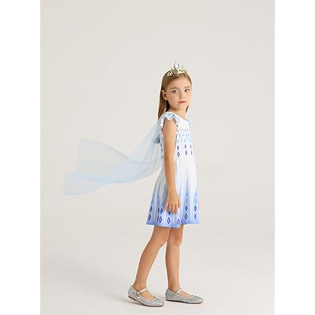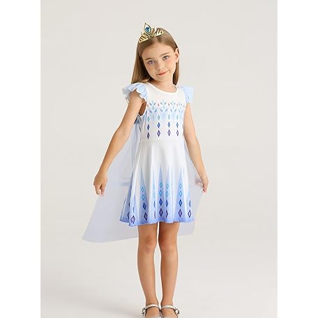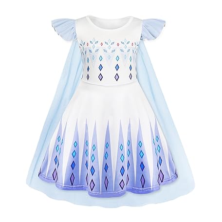 • WonderBabe Princess Dress With Cape Girls Halloween Birthday Party Cosplay Costume Toddler Ruffle Sleeve Fancy Outfit Gift
