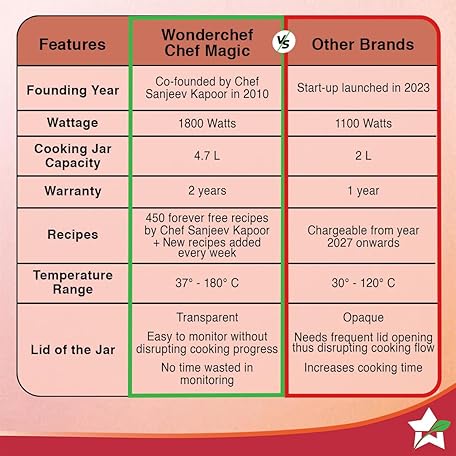 Thương hiệu Wonderchef là cái tên nổi tiếng được rất nhiều khách hàng trên thế giới chọn lựa. Với kiểu dáng đẹp mắt, sang trọng, sản phẩm Wonderchef Chef Magic | All-in-One Kitchen Robot for Indian & International Cuisine | Automatic Chopping, Sautéing, Stirring, Kneading... | Mobile App | Recipes by Chef Sanjeev Kapoor | 2 Yr Warranty là sự lựa chọn hoàn hảo nếu bạn đang tìm mua một món cho riêng mình.