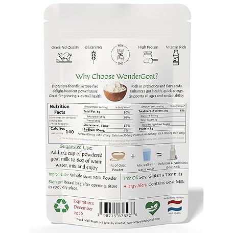 Thương hiệu WonderGoat là cái tên nổi tiếng được rất nhiều khách hàng trên thế giới chọn lựa. Với kiểu dáng đẹp mắt, sang trọng, sản phẩm WonderGoat Organic Goat Milk Powder | The Dairy of the World's Tallest People | Supports Brain Health & Digestion with A2 Protein | Grass-Fed, Non-GMO | 1 Pound Bag là sự lựa chọn hoàn hảo nếu bạn đang tìm mua một món cho riêng mình.