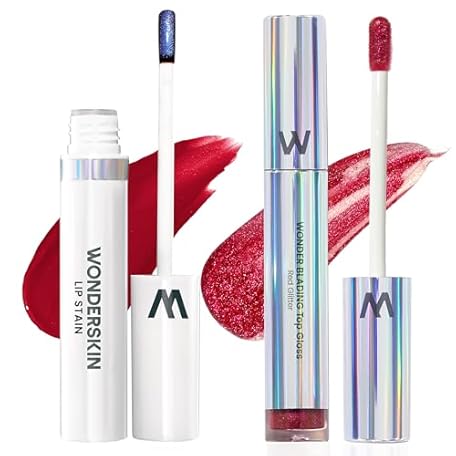 Wonderskin Wonder Blading Lip Stain Peel Off Masque - Long Lasting, Waterproof (Divine) with Top Gloss - Red Glitter Lip Gloss, Hydrating and High Shine Finish