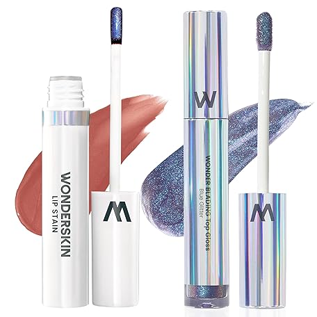 Wonderskin Wonder Blading Lip Stain Peel Off Masque - Long Lasting, Waterproof (Lovely) with Top Gloss - Blue Glitter Lip Gloss, Hydrating and High Shine Finish