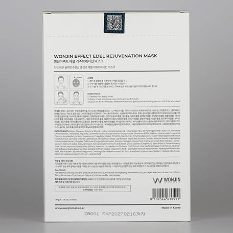 Thông tin sản phẩm Wonjin Effect EDEL REJUVENATION MASK 1.05 fl Oz*10 pieces, Hydrating, Moisturizing, Skin Elasticity, Wrinkle Care, Hyaluronic Acid, Collagen, Centella Asiatica
