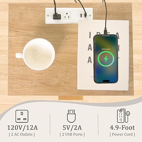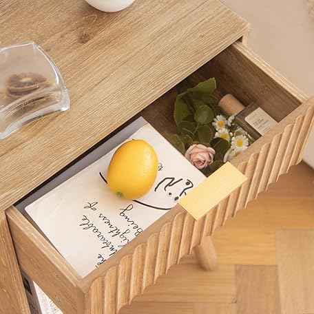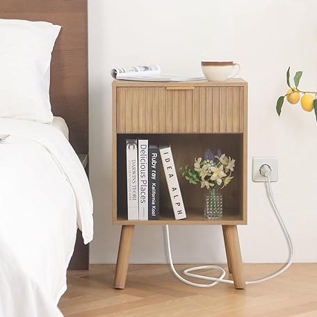 Wood Nightstand with Charging Station, Bedside Table with Fluted Drawers and Outlet, Boho Night Stand for Bedroom, Living Room, Office (Rustic Walnut)