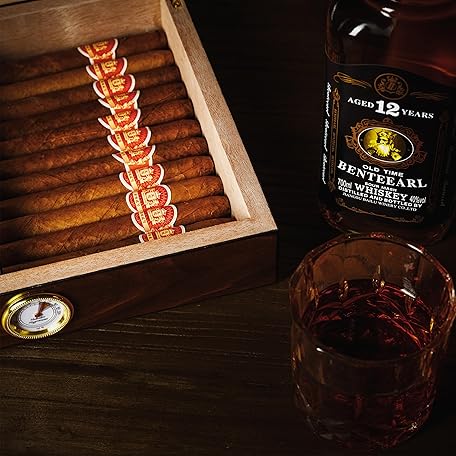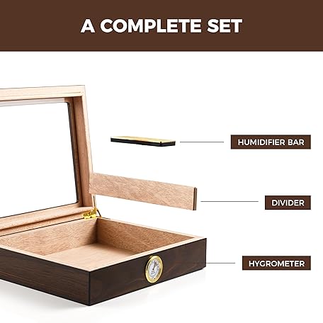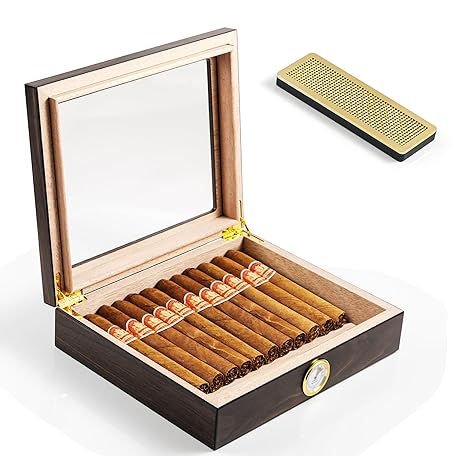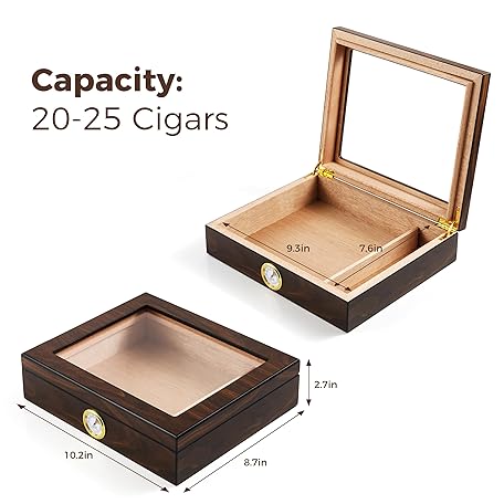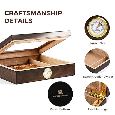 Thông tin sản phẩm Woodronic Cigar Humidor for 25 Counts with Hygrometer, Humidifier, Spanish Cedar Lined and Divider, Walnut Finish, Desktop Cigar Box Gift for Men