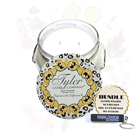 Worldwide Nutrition Bundle: Tyler Dolce Vita Jar Candle - Luxurious Scented Candle with Essential Oils - Long Burning Large Candle 11 oz and Multi-Purpose Key Chain