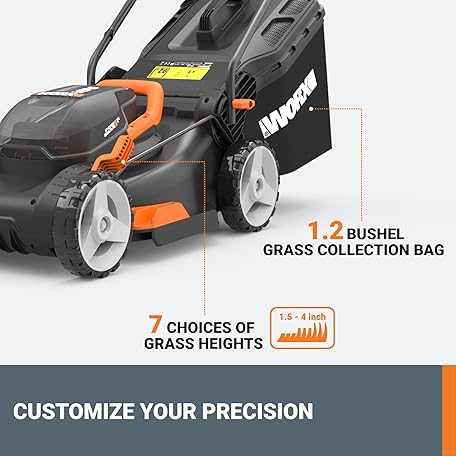 Thông tin sản phẩm WORX 40V 17" Cordless Lawn Mower for Small Yards, 2-in-1 Electric Mower Cuts Quiet, Compact & Lightweight Push Lawn Mower with 7-Position Height Adjustment – 2 Batteries & Charger Included
