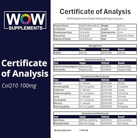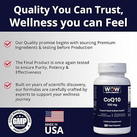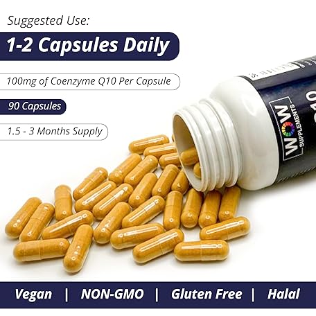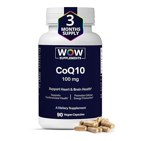 WOW Supplements CoQ10 100 mg with Hawthorn Berry - High Absorption CoQ10 100mg for Energy Production, Heart and Cellular Health - Non-GMO, Gluten-Free Coenzyme Q10 100mg Supplement - 90 Capsules