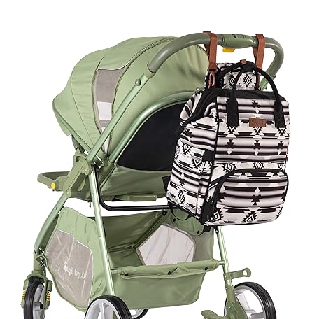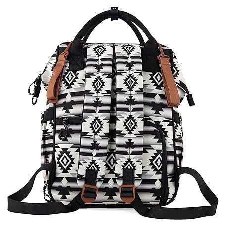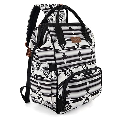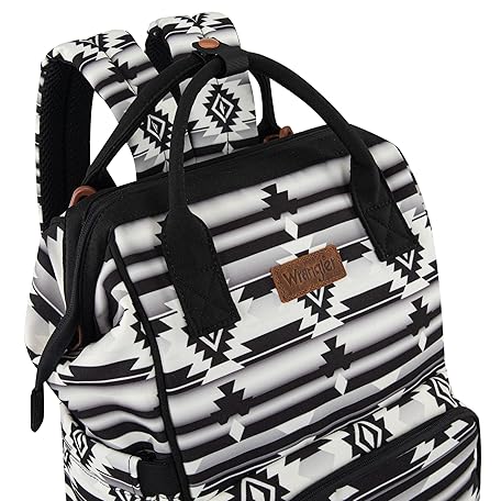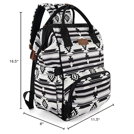 Wrangler Aztec Backpack Organized Daypack Travel Baby Bag with Stroller Strap and Side Bottle Pockets WG2204-9110BK