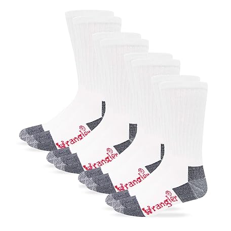 • Wrangler Men's Steel Toe Boot Work Crew Cotton Cushion Socks 4 Pair Pack