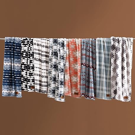 Wrangler Wrangler - Blanket, Super Soft Plush Bedding, Yellowstone Inspired Throw Blanket for Couch or Bed (Navajo Light Blue, 50" x 70")