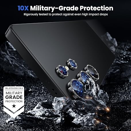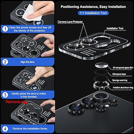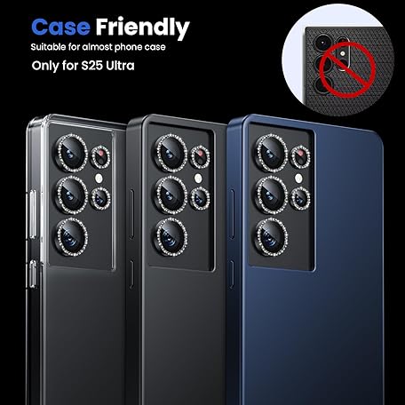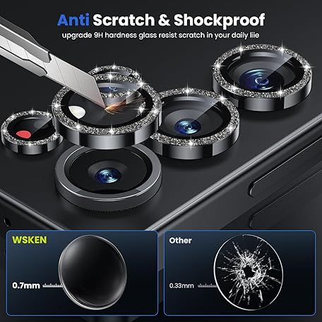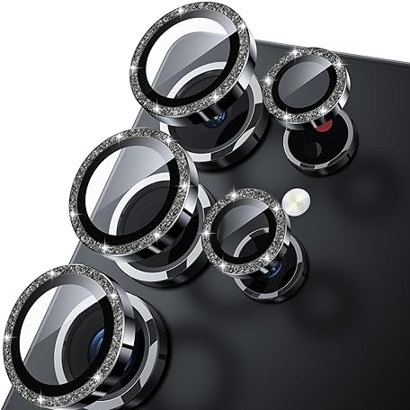WSKEN for Samsung Galaxy S25 Ultra Camera Lens Protector - Ultra Thin Case Friendly, 9H Shatterproof Tempered Glass with Aluminum Metal Circle Camera Screen Protector Cover Accessories, Glitter Black