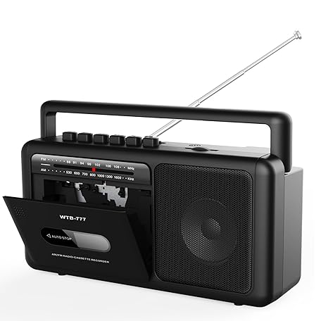 WTB-777 Portable Cassette Player Boombox, AM/FM Radio Stereo with Bluetooth, USB, Recorder, Earphone Jack, DC/AC Powered, Cassette Tape Recorder