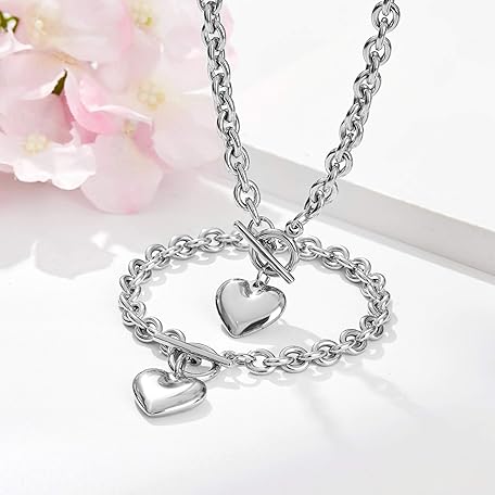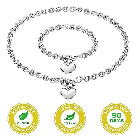 Sản phẩm W/W Lifetime Heart Chain Necklace + Heart Bracelet for Women Girls Hearts Pendant Toggle Charm Jewelry Set Stainless Steel 18K Gold/Rose Gold Silver đang được bán với giá ưu đãi là $17.4291 tại nước Mỹ.