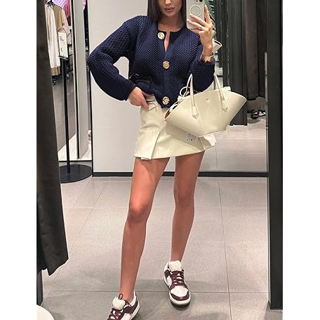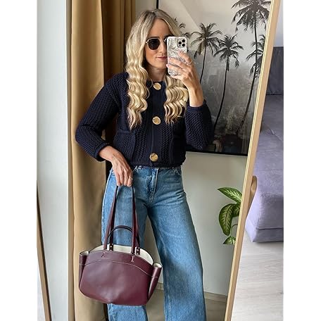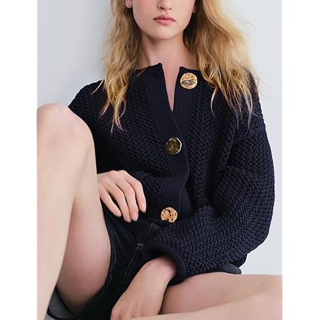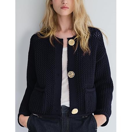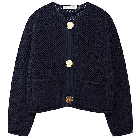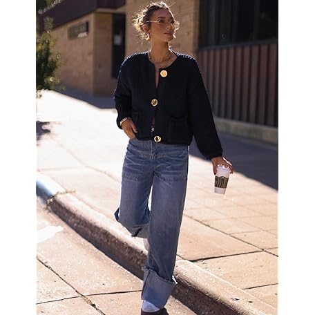 • Wyeysyt Womens Cropped Cardigan Sweaters Chunky Knit Gold Button Down Open Front Cardigan Long Sleeve Crop Crochet Sweaters