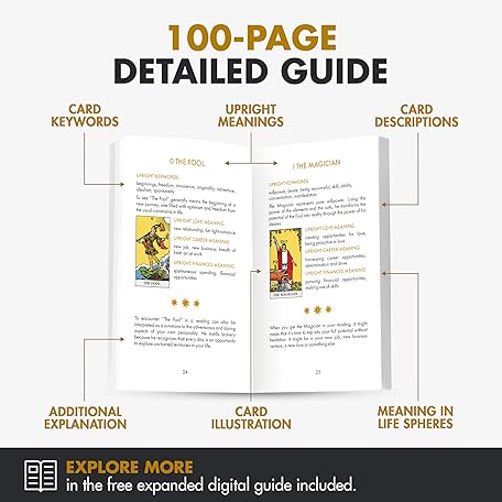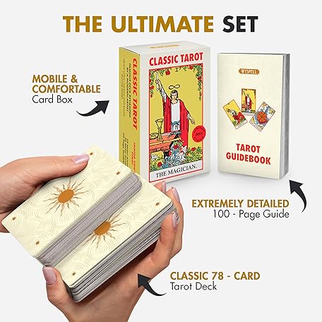Wyspell Classic Tarot Deck - Original Tarot Cards with Guide Book for Beginners - Beginner Cards with Meanings Guide (Light)
