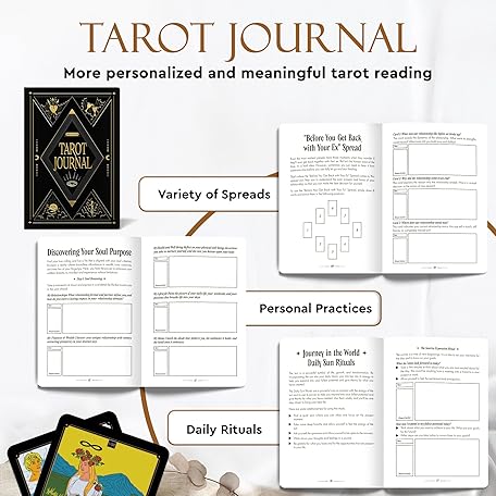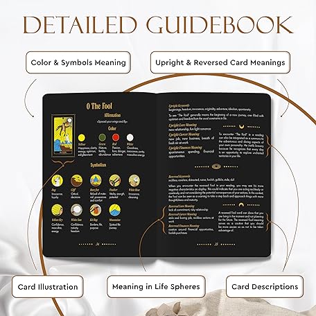 Thông tin sản phẩm Wyspell Tarot Kit Includes Gold Tarot Cards with Guide Book, a Cloth, a Bag, a Journal, and a Classic Deck Holder - Beautiful Taro Cards for Beginners Kit