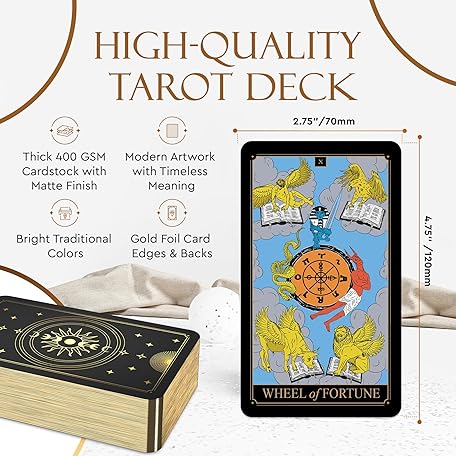 Sản phẩm Wyspell Tarot Kit Includes Gold Tarot Cards with Guide Book, a Cloth, a Bag, a Journal, and a Classic Deck Holder - Beautiful Taro Cards for Beginners Kit đang được bán với giá ưu đãi là $27.2391 tại nước Mỹ.