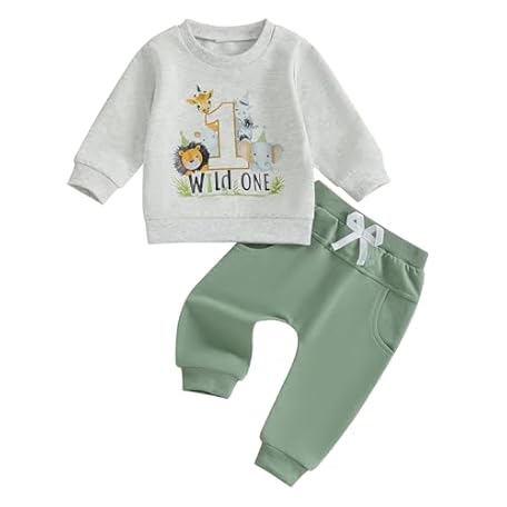 • WZTYYDS Baby Boy First Birthday Outfit Long Sleeve Sweatshirt Tops Wild One Birthday Shirt Pants Set Fall Clothes