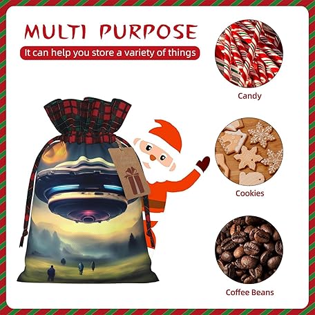 Thông tin sản phẩm WZYCWB UFO landing Christmas gift bag, size 8.3×11.8 inches, can be used to hold candies, small gifts and party props