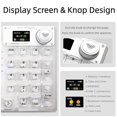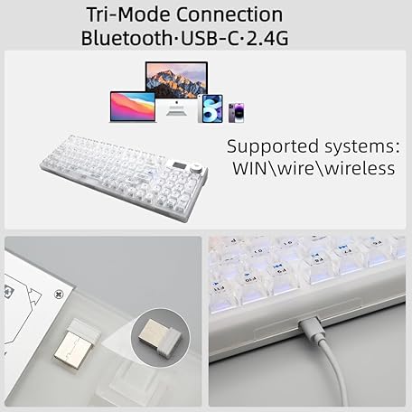 Thông tin sản phẩm x Aula F98 Pro 95% Hot-Swappable Mechanical Keyboard – Transparent Keycaps, RGB Backlit Gaming Keyboard, Tri-Mode BT5.0/2.4G/USB-C, OLED Display, 4000mAh Battery, Pink (White)