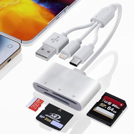 XD Card Reader, SD Card Reader, 3 in 1 TF/SD/xD-Picture-Card Memory Card Reader Camera Phone Adapter, with USB/USB-C/Lightning Port, Use for iPhone 17/16/15/14 iPad MacBook Android PC Laptop