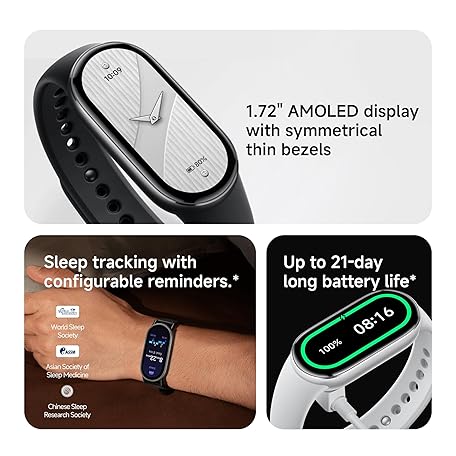 XIAOMI Mi Smart Watch Band 10, 5ATM Waterproof Fitness Step Tracker Sports Digital Smart Watch Health Band for Men Women, 1.72" AMOLED Display, 150+ Sports Modes 24/7 Sleep Monitor (Black)