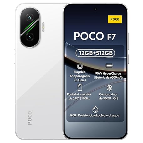 • XIAOMI Poco F7 Ai 5G (for Tmobile Mint Tello & Global) (512GB + 12GB) NFC 1.5K 6.83" Amoled 50MP Sony Cam Gamers Phone NFC Dual sim Unlocked Model 25053PC47G (White)