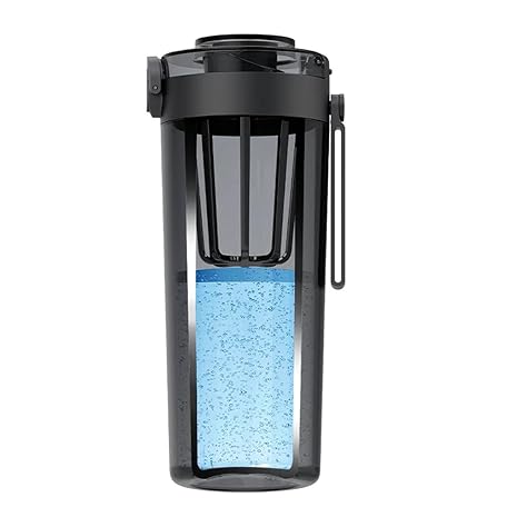 XIAOMI Tritan Water Bottle 600ml, BPA-Free Portable Cup with Tea Strainer & Leak-Proof Lock, One-Hand Operation, for Travel/Sports (Dark Grey)