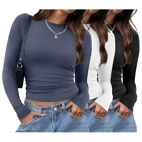 XIEERDUO Women's Long Sleeve Crew Neck Slim Fit T Shirts 2024 Y2k Clothes Basic Going Out Tops 3 Pack/2 Pack