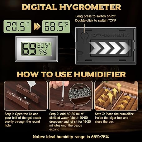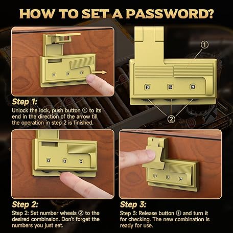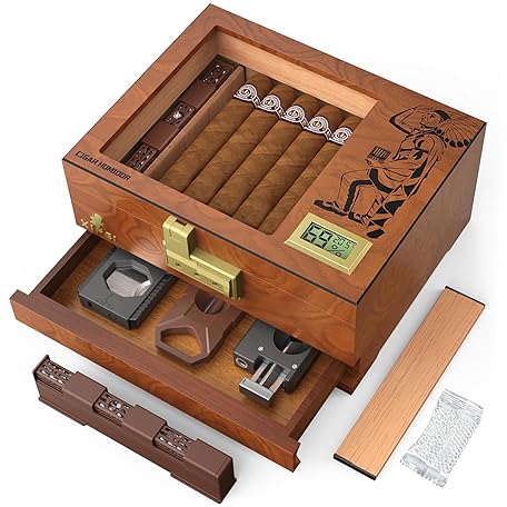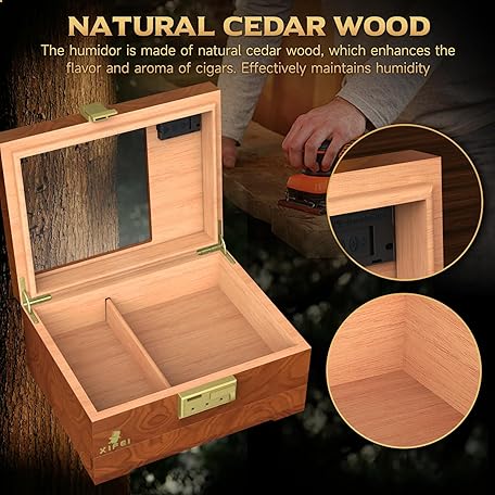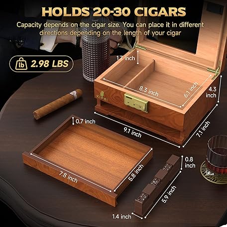 XIFEI Cigar Humidor Box, Cedar Wood Desktop Cigar Case with Digital Hygrometer, Humidifier, Divider, Accessories Drawer and Combination Lock, Glass Top Humidors Gift for Men (Brown)
