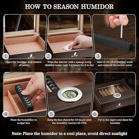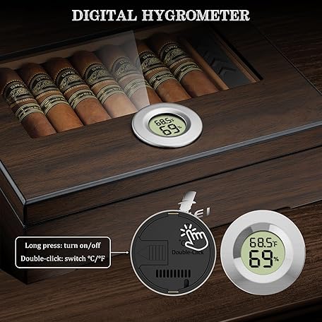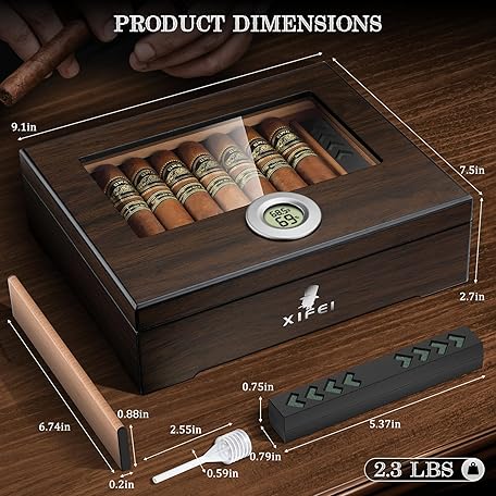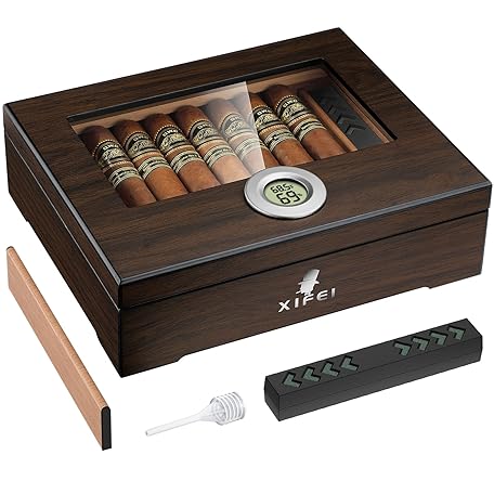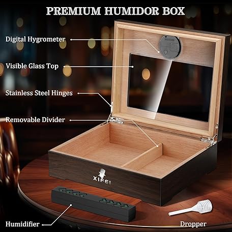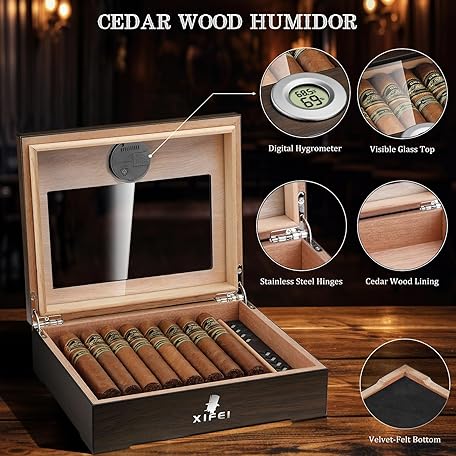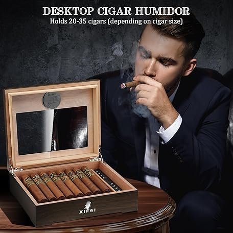 XIFEI Cigar Humidor with Digital Hygrometer, Humidifier, Glass Top Desktop Humidor Box with Divider, Spanish Cedar Wood, Premium Storage Box for 20-35 Cigars, Ideal Gift for Cigar Lovers